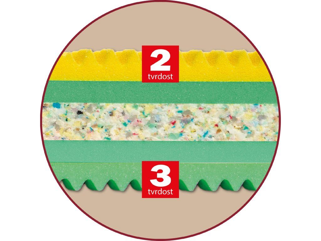 Pomáhá předcházet bolestem zad, uvolňuje svaly a podporuje správnou ergonomii těla během spánku. Měkčí strana (tvrdost č. 2) je tvořena viscoelastickou pěnou tvarovanou do masážních nopů (45 kg/m³).Pěna reaguje na tělesné teplo a přizpůsobuje se konturám těla.Pod ní je vrstva pěny MediFoam (30 kg/m³).Vyztužení a odolnost matrace je zabezpečena vysoce gramážní plotnou pojeného polyuretanu (RE 70) ve střední části matrace. Tvrdší stranu (tvrdost č. 3) tvoří rovná plotna pěny MediFoam (30 kg/m³) společně s další vrstvou (32 kg/m³) tvarovanou do masážních nopů v sedmi zónách.
